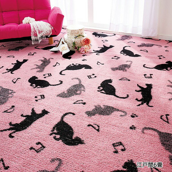 カーペット・マット 関連商品 撥水加工 クロネコ柄タフトカーペット/絨毯 【江戸間6畳】 抗菌防臭加工 フリーカット 日本製